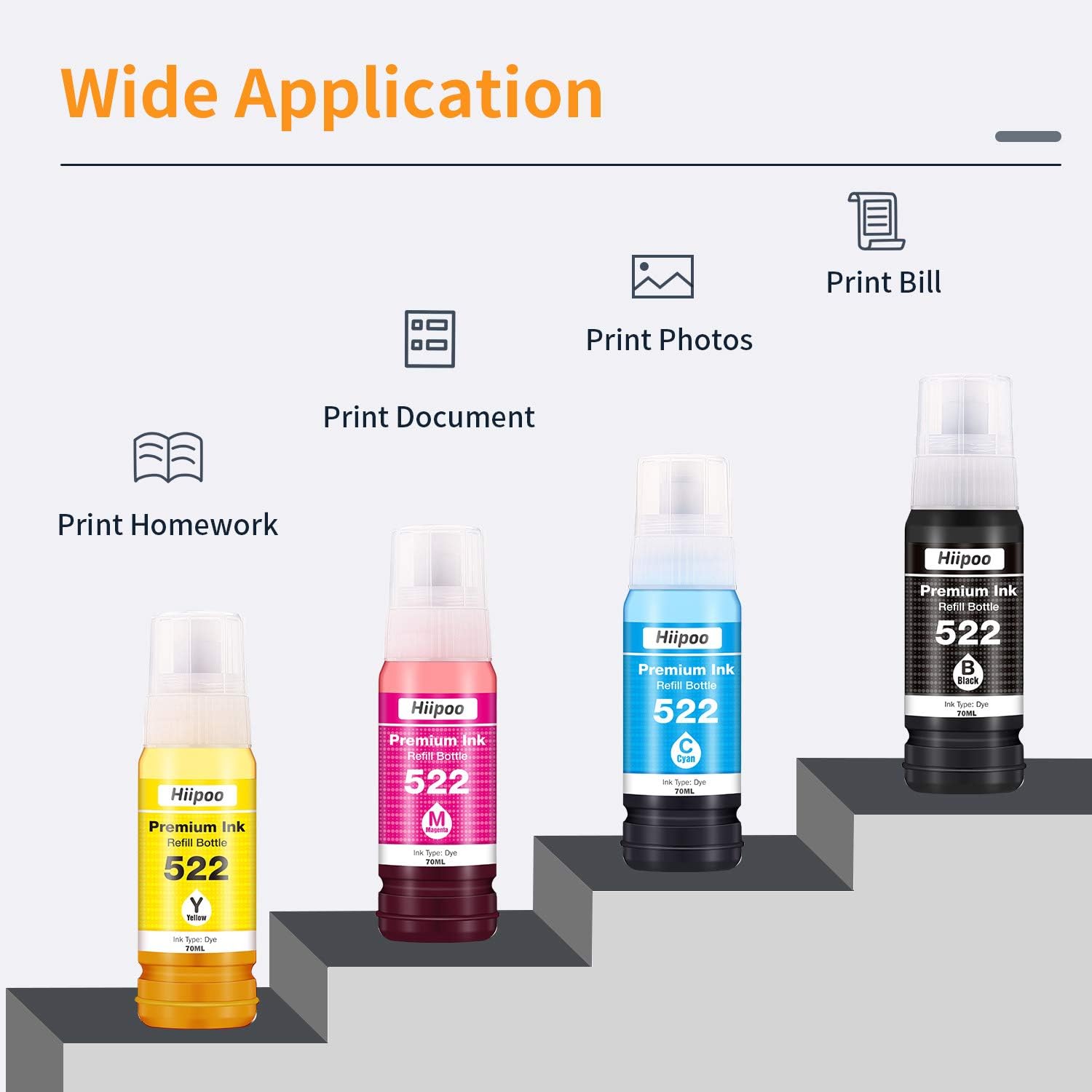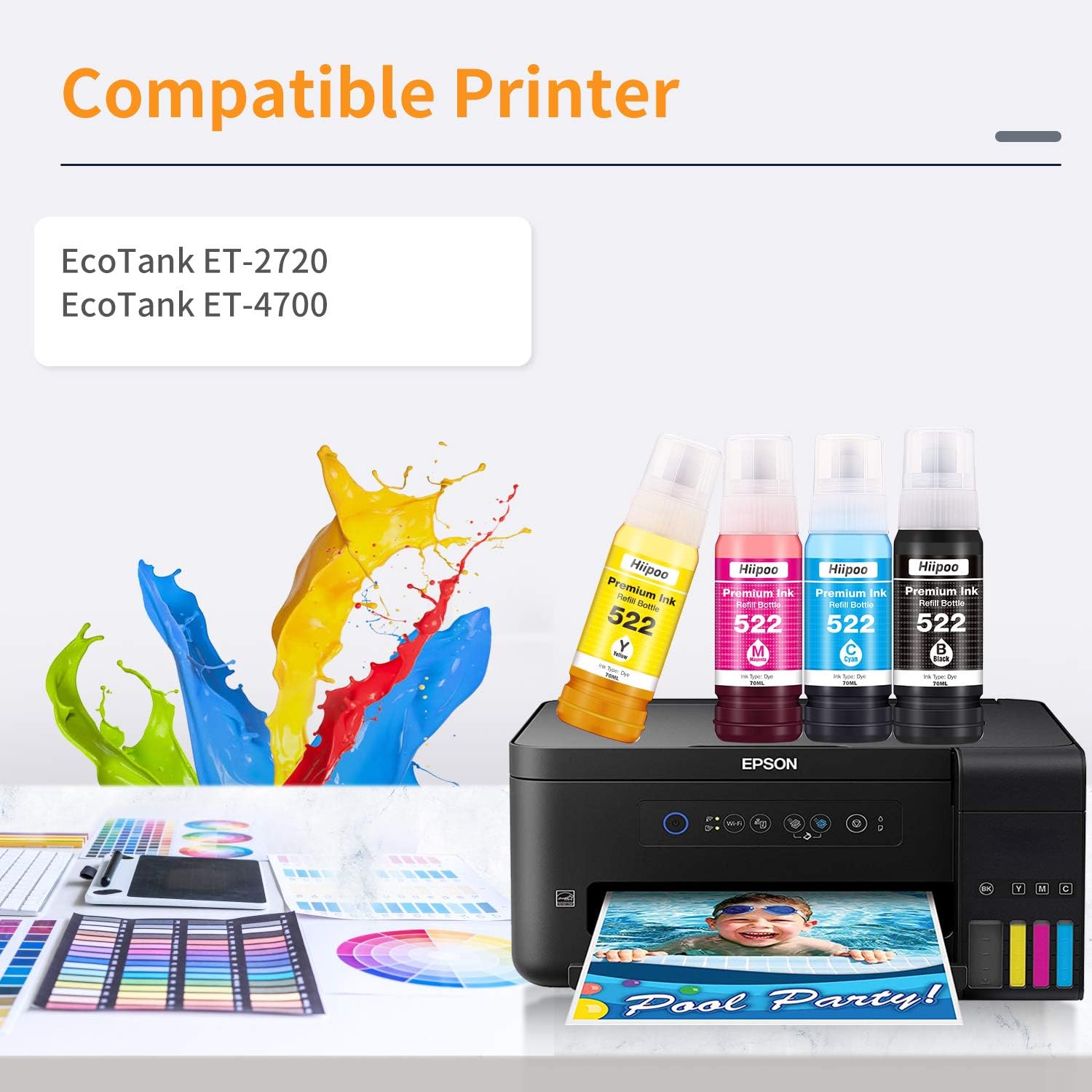 Hiipoo compatible refill ink bottle replacement for epson 522 t522 use with epson ecotank et 2720 et 4700 printer black cyan magenta yellow 4 pack 4 9 out of 5 stars 24 21 99 21. Hiipoo t522 522 ink bottles use with epson ecotank et 2720 epson ecotank et 4700 et2720 et4700 printer.