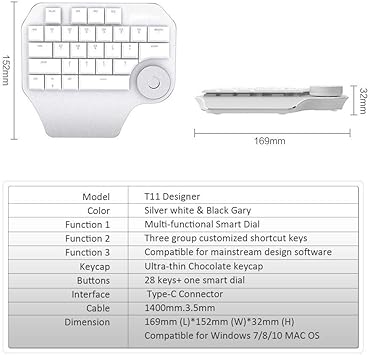 Amazon Com Moveski T11 Wired Designer Keyboard Type C With Smart Dial 3 Group Customizable Keys Keypad Compatibility For Wacom Windows Mac Design Software Gray Computers Accessories