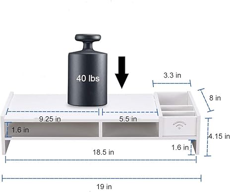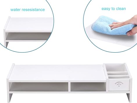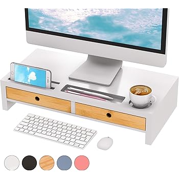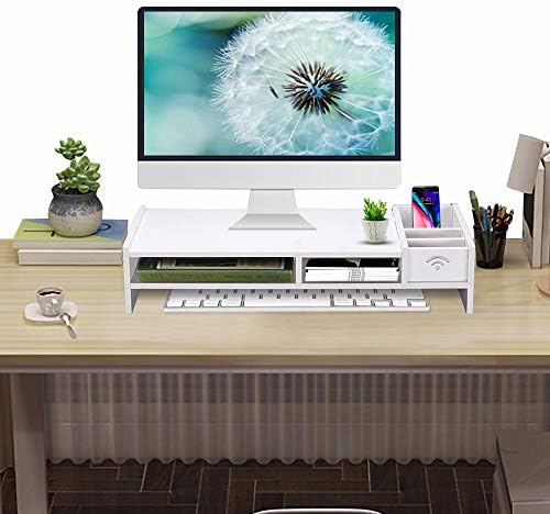 Monitor stand riser computer laptop riser shelf with organizer drawer white 19 l x 8 w x 4 h 4 2 out of 5 stars 392. Monitor stand riser computer laptop riser shelf with organizer drawer white 19 l x 8 w x 4 h 1home wood monitor stand arm riser desk storage organizer speaker tv laptop printer stand with cellphone holder and cable management 16 7 inch 2 tiers shelves black.