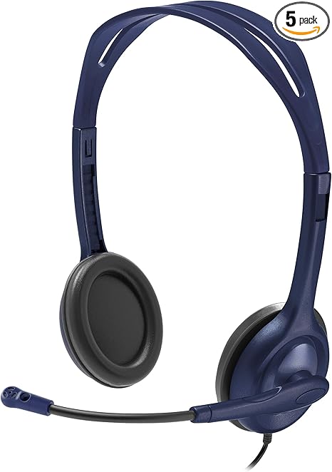 Amazon Com Logitech Wired 3 5mm Headset With Microphone For Educational Use 5 Pk Midnight Blue Computers Accessories