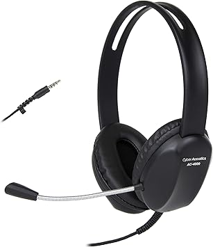 Amazon Com Cyber Acoustics 3 5mm Stereo Headset With Headphones And Noise Cancelling Microphone For Pcs Tablets And Cell Phones In The Office Classroom Or Home Ac 4000 Electronics