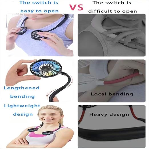 You can hang it around your neck. Hand free personal fan portable sports neck hanging fan usb rechargeable wearable fan 3 level air flow led lights for running travel camping office 4 3 out of 5 stars 643 11 98. Portable mini usb fan handheld personal electric desk fan with rechargeable battery table fan for office home kitchen travelling desktop student indoor outdoor pink bedroom cooling tools.