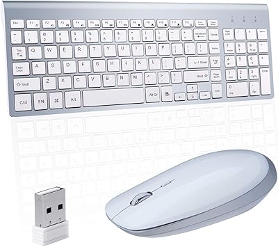 Amazon Com Rechargeable Wireless Keyboard Mouse Combo Seenda Full Size Cordless Keyboard Mouse Sets With Build In Lithium Battery Ultra Thin Quiet Keyboard Mice Silver And White Electronics