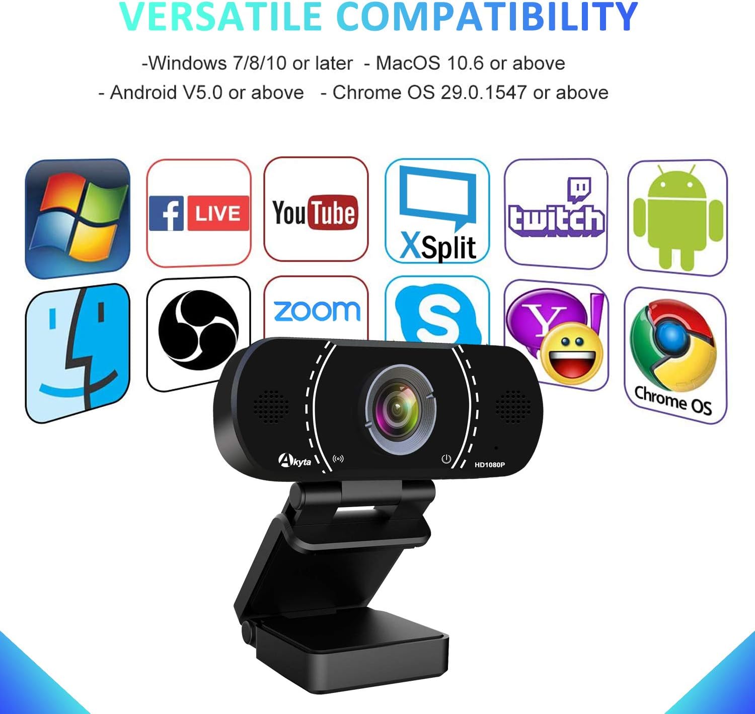 Hd pro webcam 4k 1080p akyta 8mp pc laptop computer camera usb webcam with microphone auto focus web camera for video conference obs twitch youtube xbox one game streaming tv skype 4k webcam. Windows all versions mac os android chrome os and smart tvs.