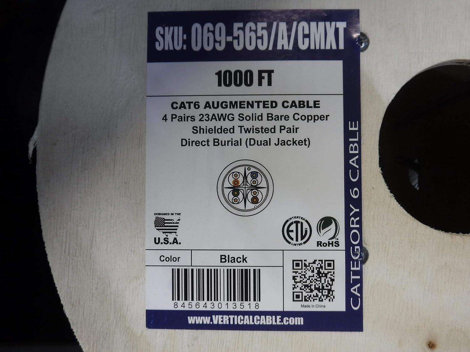 Amazon Com Vertical Cable Cat6a Shielded Dual Jacket Direct Burial 1000ft Black Bulk Ethernet Cable Computers Accessories