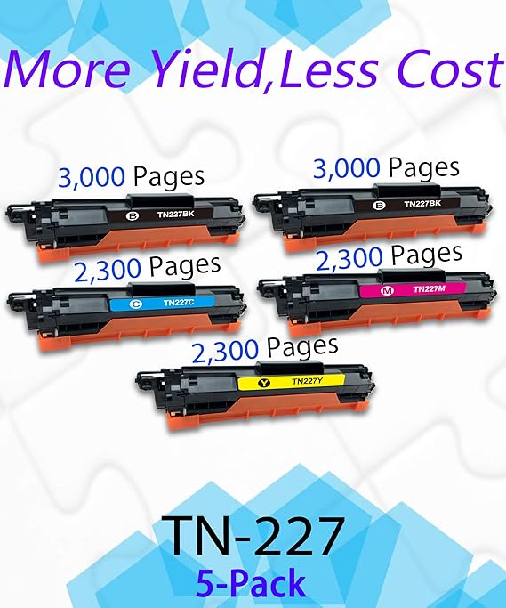 Brother tn227 4 high yield color toner set bk c m y 1 tn227bk 1 tn227c 1 tn227m 1 tn227y b07jngzmrn. Our brother tn227 cartridges are guaranteed to work in your brother printer. The goal of the original brother tn227 oem combo toner cartridge is to offer the ultimate printing experience. Our cartridges will provide the same page yield as the original oem brother brand cartridges.