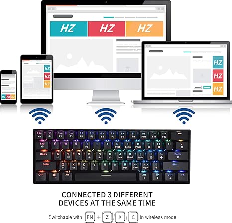 The next keyboard is the g cord full size wireless mechanical keyboard ideal for gaming or office. Hzgamer wireless 60 mechanical gaming keyboard with rgb backlit 61 keys ultra compact office computer keyboard for multi device iphone android mobile pc laptop blue switch 5 0 out of 5 stars 2 39 99 39.