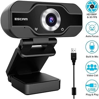 Amazon Com Escam 1080 P Full Hd Usb Webcam For Pc Desktop Laptop Web Camera With Microphone Electronics