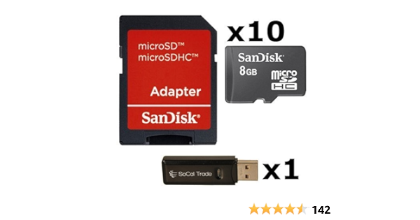 Amazon Com 10 Pack Sandisk 8gb Microsd Hc Memory Card Sdsdqab 008g Bulk Packaging Lot Of 10 With Sd Adapter And Usb 2 0 Micosd Electronics